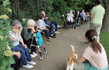 そして、 私たちの理念に賛同する60名を超える地域のボランティアの方々が、 ケアと地域のかけ橋となってデイサー ビスやいつぷく荘などで活動しています。 また、 毎月の子ども広場の開催や、 遺族会と協働したグリ ー フケアなどにも取り組んでいます。 ケアタウン小平は、具体的な在宅ケアの拠点であるとともに、「相互依存」をキーワードにした、ケアと地域の交流拠点です。